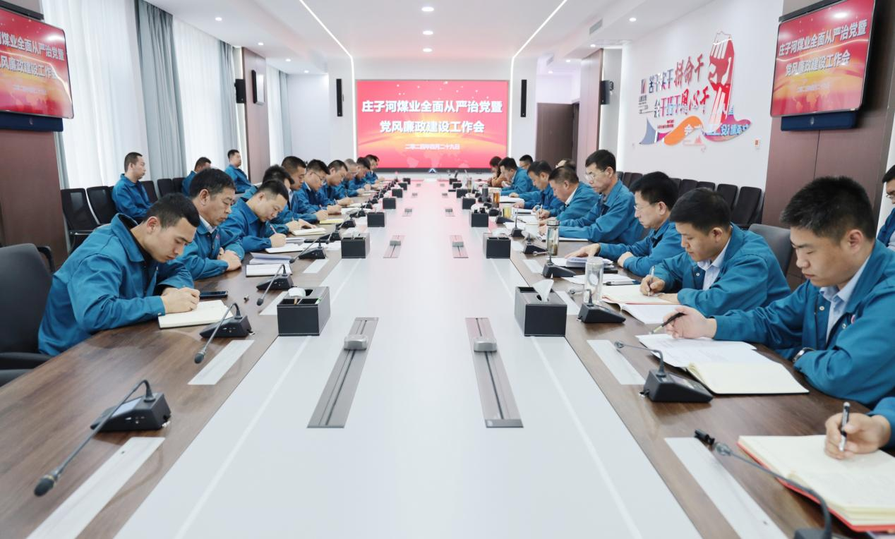 4月29日,莊子河煤業召開2024年全面從嚴治黨暨黨風廉政建設工作會。公司黨支部書記、董事長崔聯兵出席會議并講話,黨支部委員、安全副經理崔世紅作黨風廉政建設工作報告,黨支部委員、總工程師李兵偉主持會議。