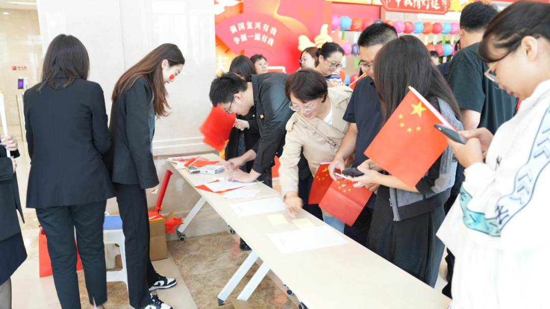 活動現(xiàn)場設(shè)置了“寄語迎國慶,祝福贊祖國”簽名寄語墻,干部員工們通過手寫簽名寄語的形式,紛紛向祖國獻上生日祝福。“我愛你,祖國!”“祖國,我為你驕傲!”……大家用樸實真摯的言語寫下了心里話,抒發(fā)自己對祖國的熱愛之情,表達了強國復興有我、爭創(chuàng)一流有我的堅定信念。