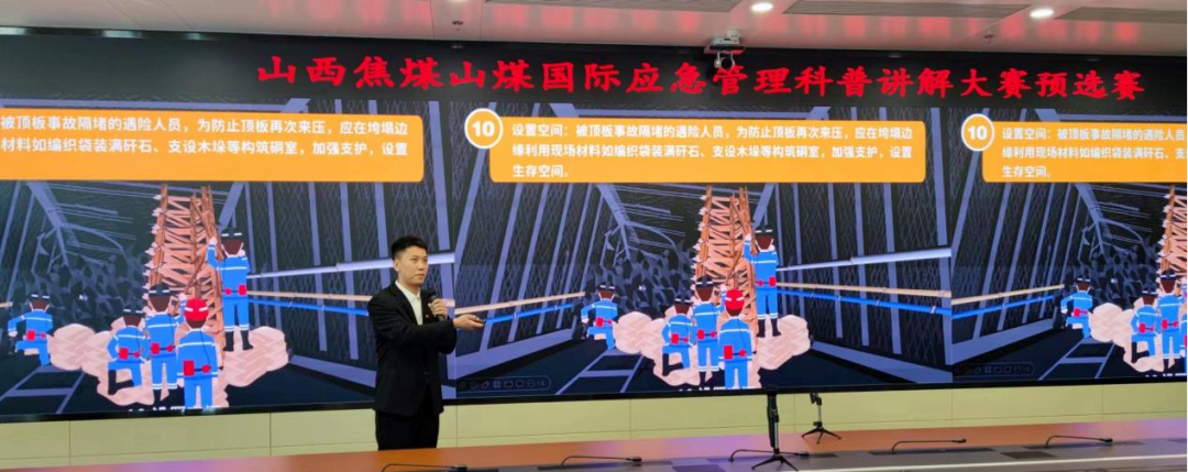 預(yù)選賽現(xiàn)場,14名選手圍繞主題,結(jié)合各自工作特點(diǎn),從不同角度命題講解安全生產(chǎn)、防災(zāi)減災(zāi)救災(zāi)、應(yīng)急救援等應(yīng)急知識。選手們充分發(fā)揮個人特長,借助多媒體演示、視頻播放等手段,讓講解深入淺出、形象生動、通俗易懂,參賽作品內(nèi)容豐富,創(chuàng)意新穎,形式多樣。經(jīng)過預(yù)選賽的激烈角逐,有1名選手脫穎而出,將選送參加山西焦煤集團(tuán)的應(yīng)急管理科普講解大賽。