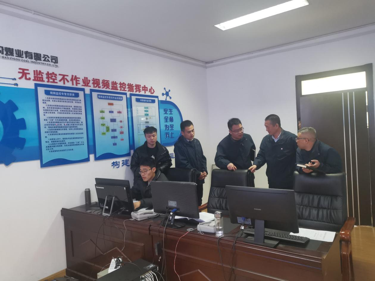 11月28日,豹子溝煤業(yè)黨總支書記、董事長蘇松嶸到礦無監(jiān)控不作業(yè)視頻監(jiān)控指揮中心調(diào)研指導(dǎo)工作,黨總支委員、經(jīng)理左朝宇及相關(guān)領(lǐng)導(dǎo)和部門人員參加。